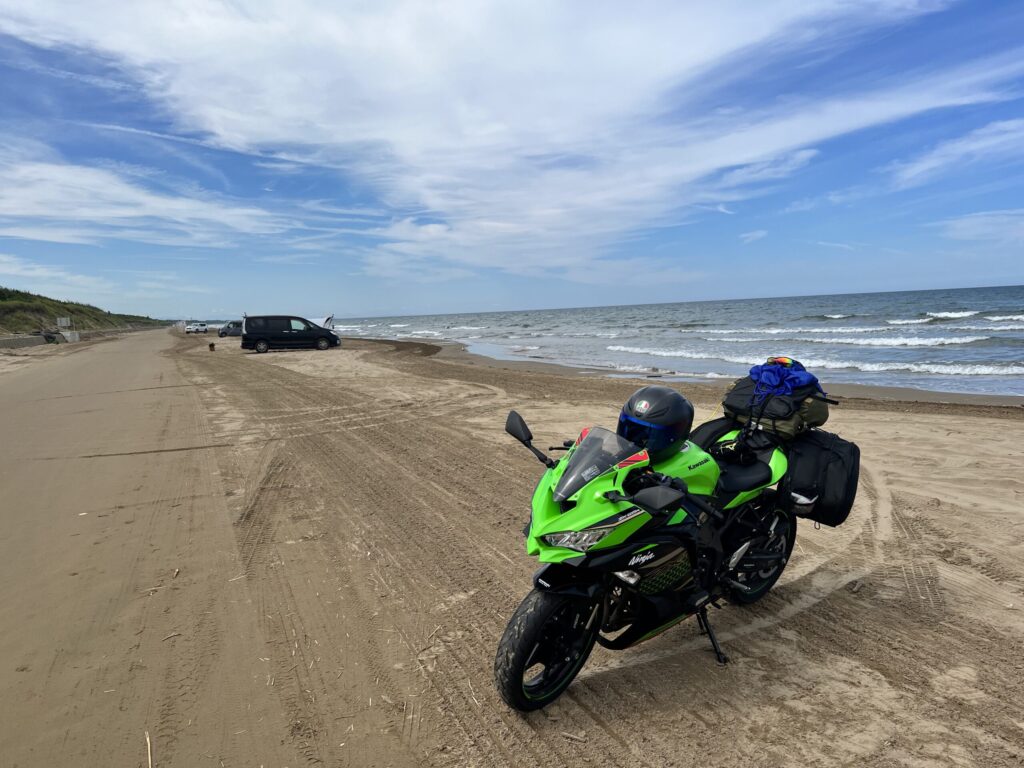 車だけでなく、バイクや自転車、徒歩でも楽しめ、波打ち際まで近づける非日常感が魅力です。